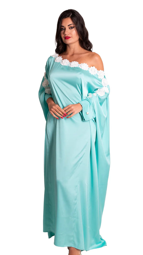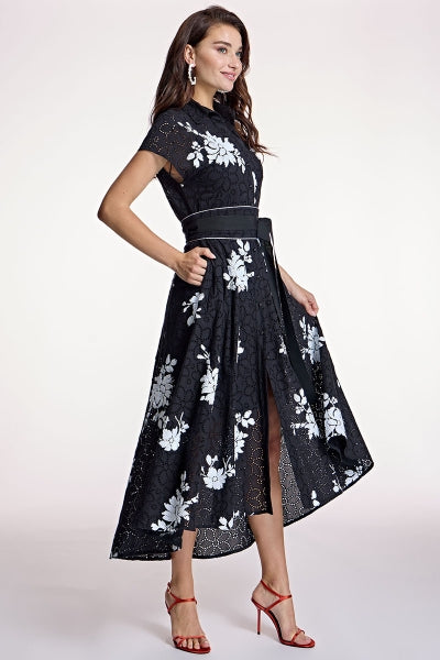 Abito lungo in pizzo trasparente dettaglio fiore MANUEL GARCIA -