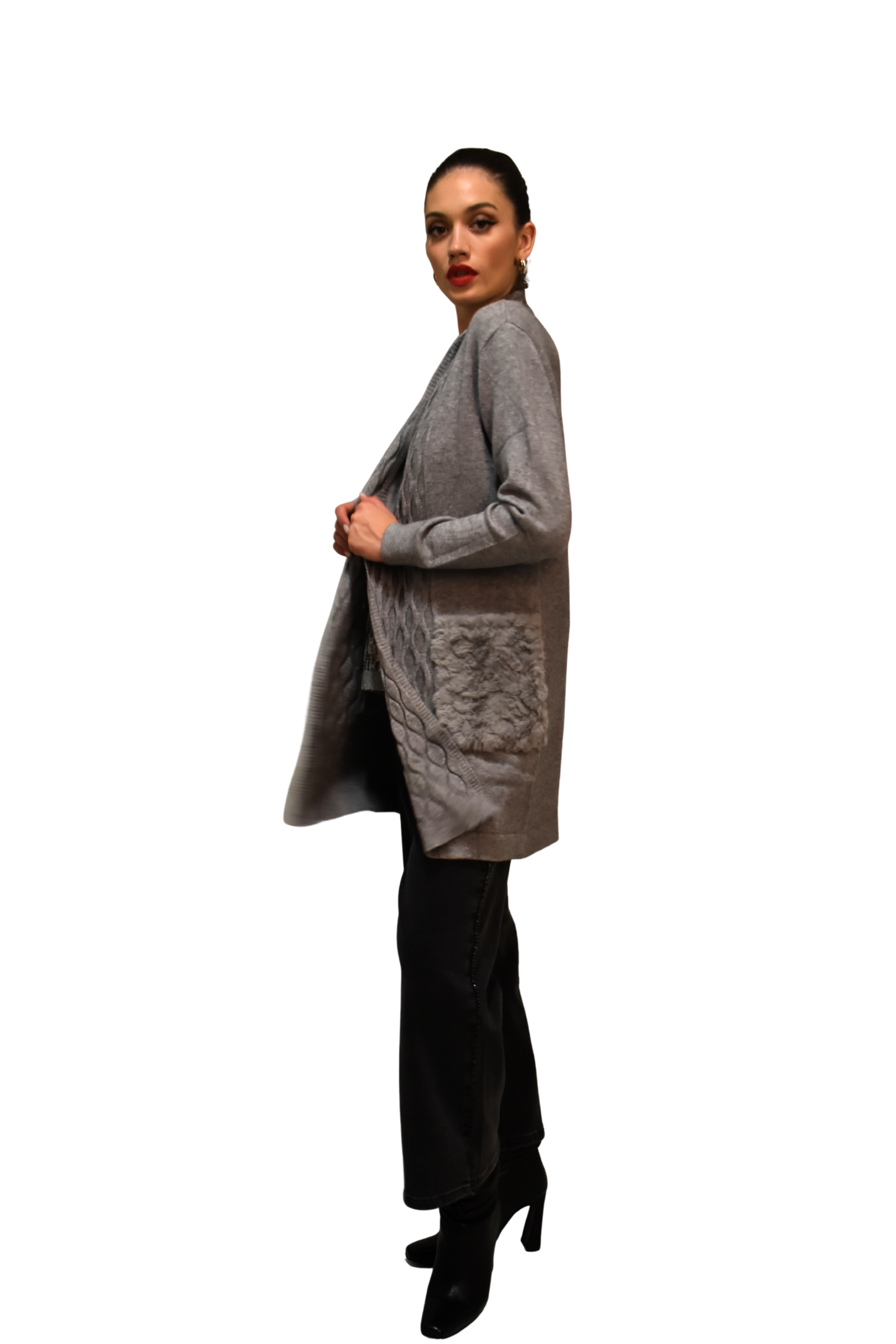 Cardigan lungo in maglia con tasche in ecofur Z.O.E.