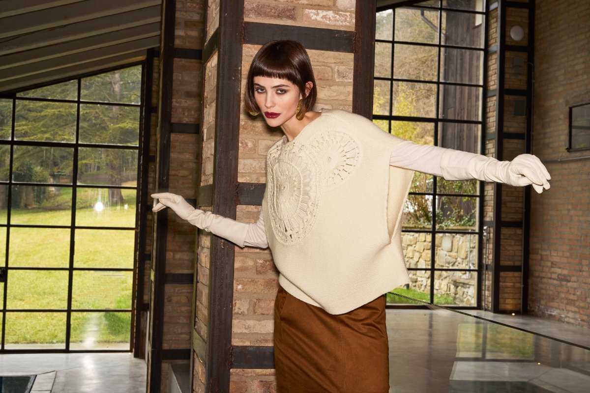 Maglia in lana senza maniche dettaglio intarsio CALATURA