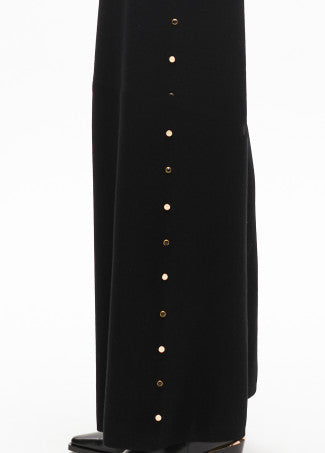 Pantaloni larghi in morbido tessuto in maglia nero con borchie decorative laterali.